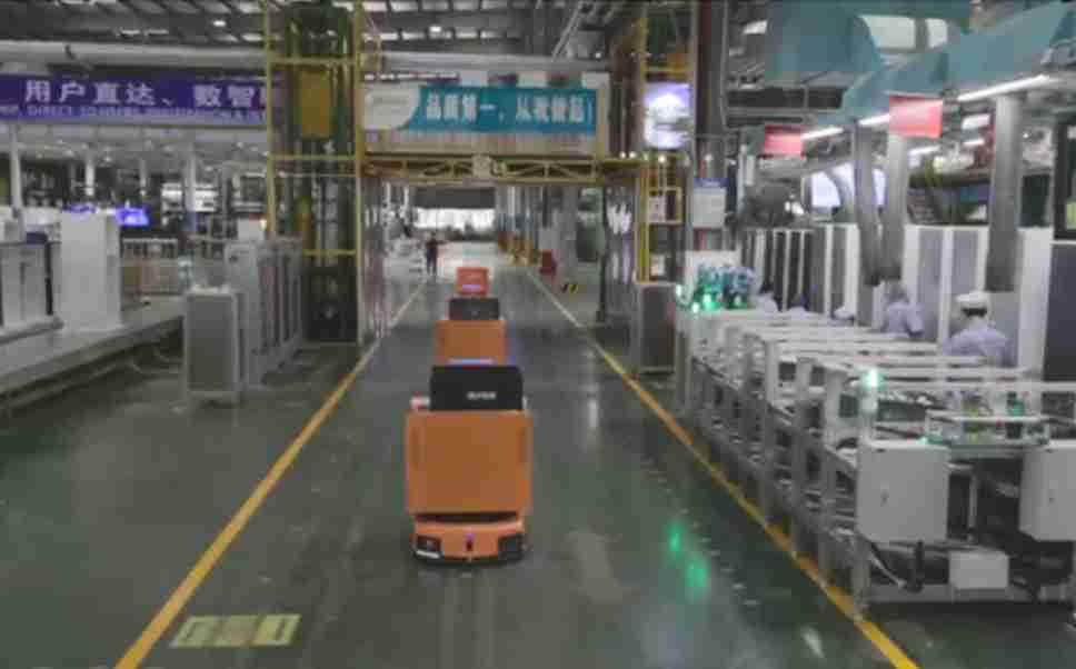 为车载冰箱物流配送打造的智能解决方案,,包含产中物流通过潜伏举升AMR搬运至线边,,,产后成品物流智能仓储,,流程包含产中物流智能齐套入库,,,线边安灯叫料AMR智能配送至线边,,,,成品入库、、、出库,,,通过无人堆高车机器人,,,智能仓储管理替代人工作业管理,,,,实现更高存储、、、更高效率、、、、更具柔性化的解决方案。。。